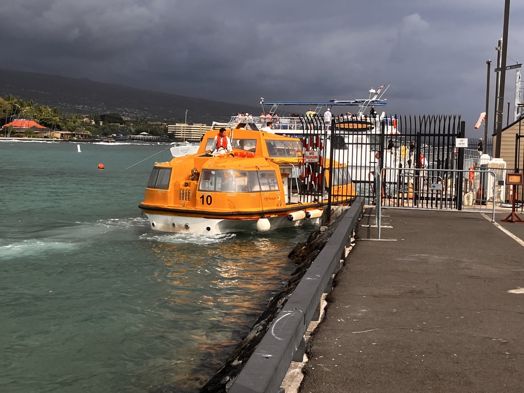 In Kailua-Kona, your ship will anchor offshore and tender you to the town pier, which drops you right into the heart of historic Kona. From there, many shops, cafés, and historical sites like Hulihe‘e Palace and Mokuaikaua Church are within easy walking distance. Taxis, rideshares like Uber and Lyft, and local tour shuttles are available at the pier, but keep in mind that availability can be limited when multiple ships are in port. If you’re planning to visit outlying areas—like a coffee farm, a beach farther down the coast, or Puʻuhonua o Hōnaunau (the City of Refuge)—an organized tour or rental car is the best way to go.