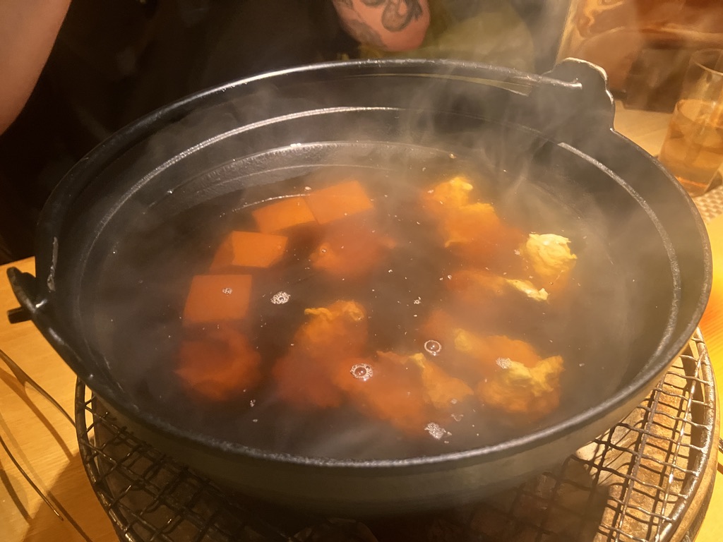 Then they placed a plate of coals on our table with a big pot
